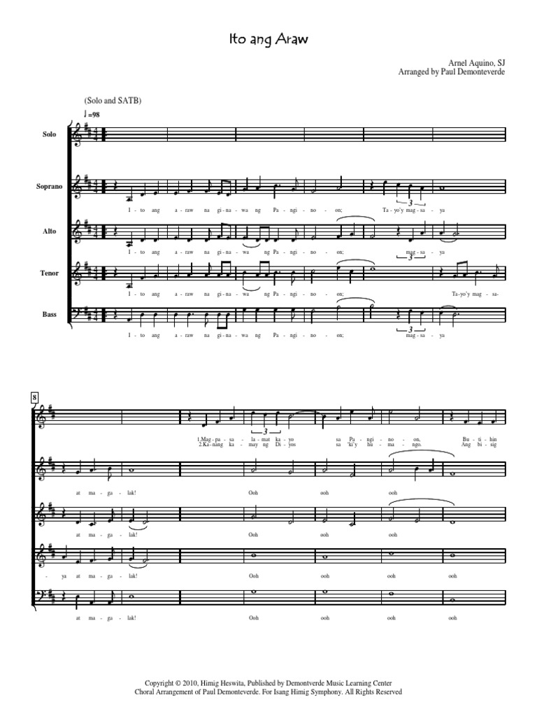 6142015 Download and print in PDF or MIDI free sheet music for Ito Ang Araw by Misc tunes arranged by raphyortanez for Piano Solo Piano. Buksan ang aming puso. Nak ng ta oy na.